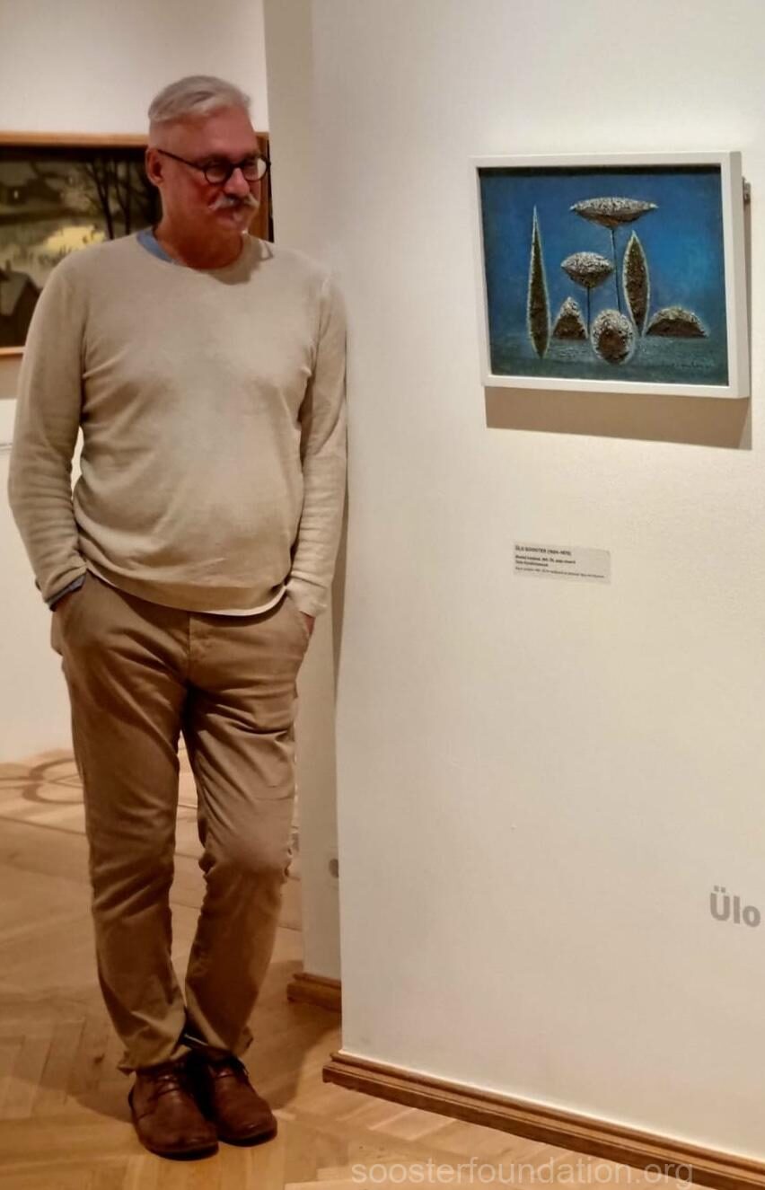 These two photographs are separated by more than half a century. In the first, the artist Ülo Sooster holds his young son Tenno in his arms. In the second, the artist Tenno Sooster stands next to his father's paintings at the exhibition "Visual Arts of the 1960s in Tartu,"which took place at the Tartu Art Museum (16.09.2023 - 25.02.2024).