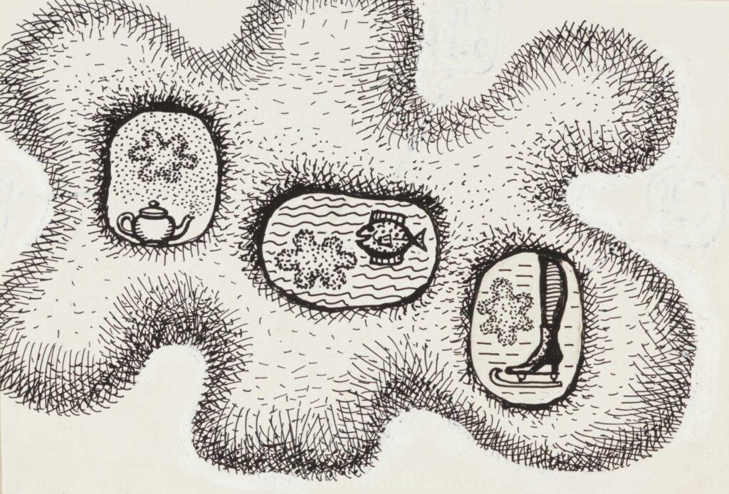 Therefore, Sooster had a multiple or hybrid identity – a kind of trickster, who was everywhere but fully belonged nowhere. In Moscow, he was perceived as a foreigner because of his accent and habits, such as smoking a pipe and sketching in a café. However, when it comes to Estonia, he might have felt it was too provincial, although he did miss his homeland and it was the inspiration for his cryptic world of symbols, which included the fish, the sea, the egg and the juniper. Sooster’s identity as an artist was also hybrid because he did not focus on one aesthetic-philosophical system but simultaneously worked with very different visual and conceptual approaches – from the absurd of surrealism to the estrangement of metaphysical painting, from the deformation of cubism to the expressiveness or constructed analytical nature of abstractionism. In Moscow, with his close friend and colleague Yuri Sobolev, Sooster continued his research of modern art – not only playing with many of its methods in his work5 but also using it to develop his own original pictorial system. Alongside Sooster’s refined illusionist oil paintings, his heritage includes uncountable ink drawings and sketches – a true explosion of ideas and potential approaches, which demonstrates his ability to both think as quickly as he was drawing single lines and to work consistently on one single image, forming it layer by layer with brushstrokes.