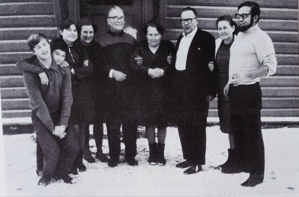Photo: Ülo Sooster with relatives in Hiiumaa. From the right: Ülo, ?, Ülo’s uncle August, Ülo’s aunt Aino, Ülo’s father Johannes, ?, Ülo’s sister Eha, Ülo’s son Tenno Pent, Ülo’s brother Ants.