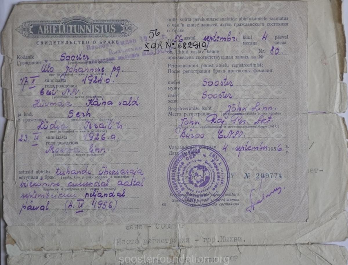 В Эстонии отправились в город Йыхви, где жила младшая сестра Юло - Меэди с мужем Лембитом Калле и сыном Хенри. Здесь в сентябре молодые люди зарегистрировали брак.